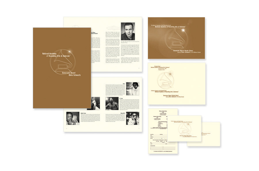Broad sampling of collateral material for financial services, entertainment, non-profit, special events, awards show, sports